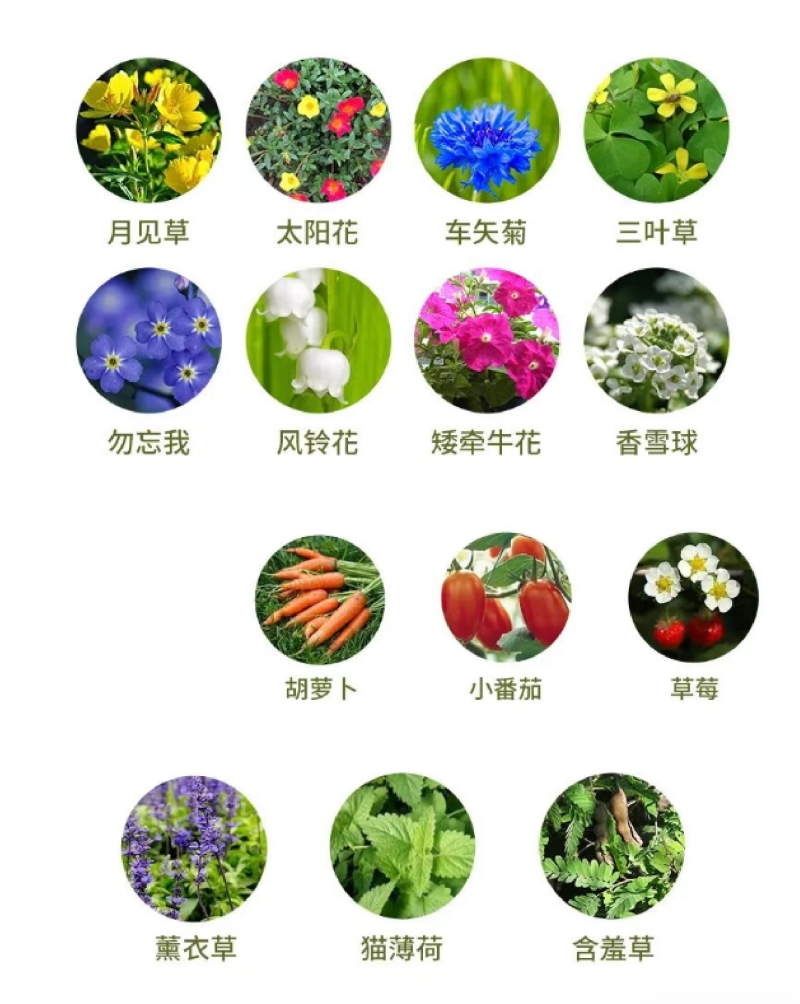 种子纸中包含的植物种子,种类多样。如花卉种子、草本植物种子、食用蔬果种子、灌木植物花草种子等,可按需定制。